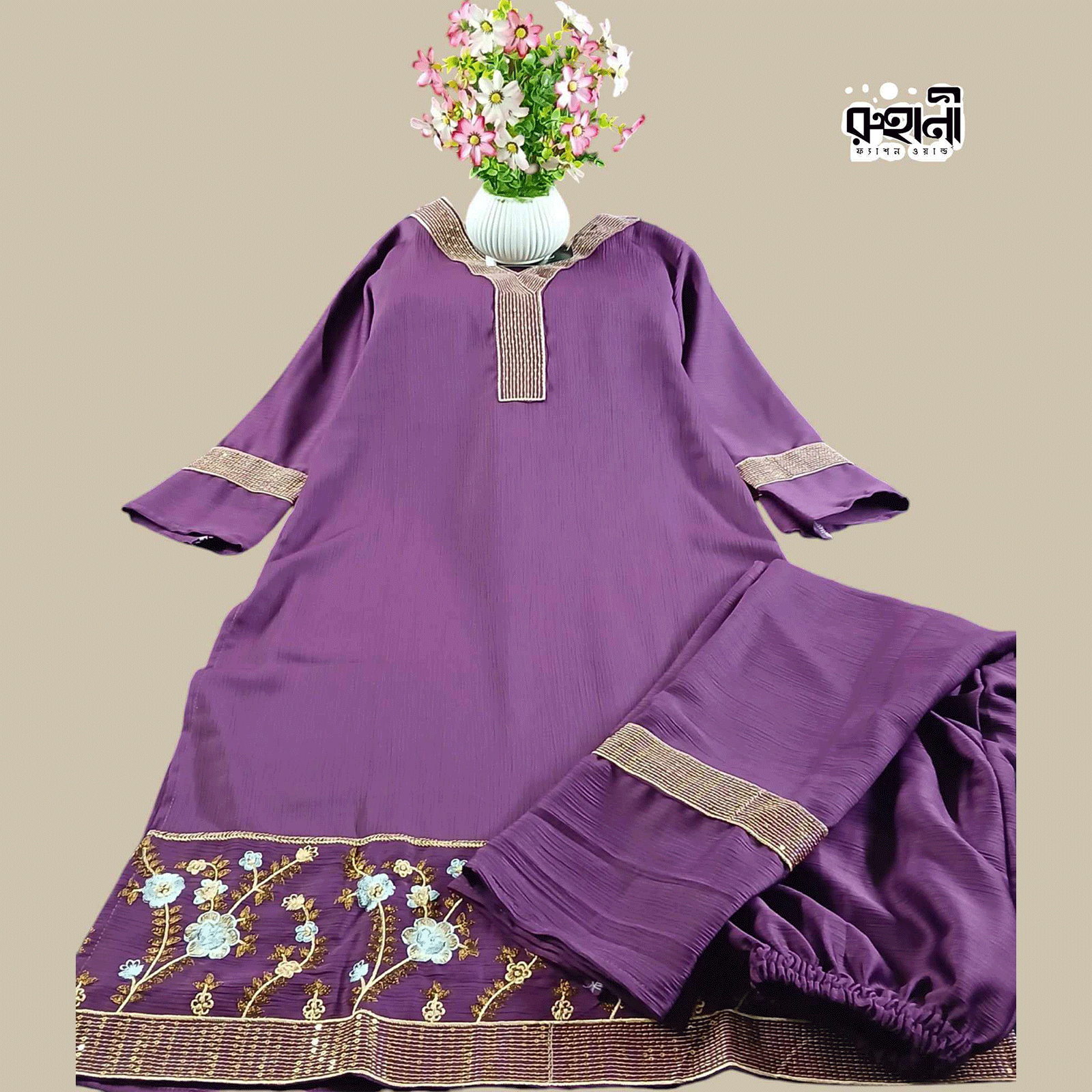 জুম কাপড় টু পিস পারপেল ড্রেস | Zoom Cotton Two Piece Purple Dress